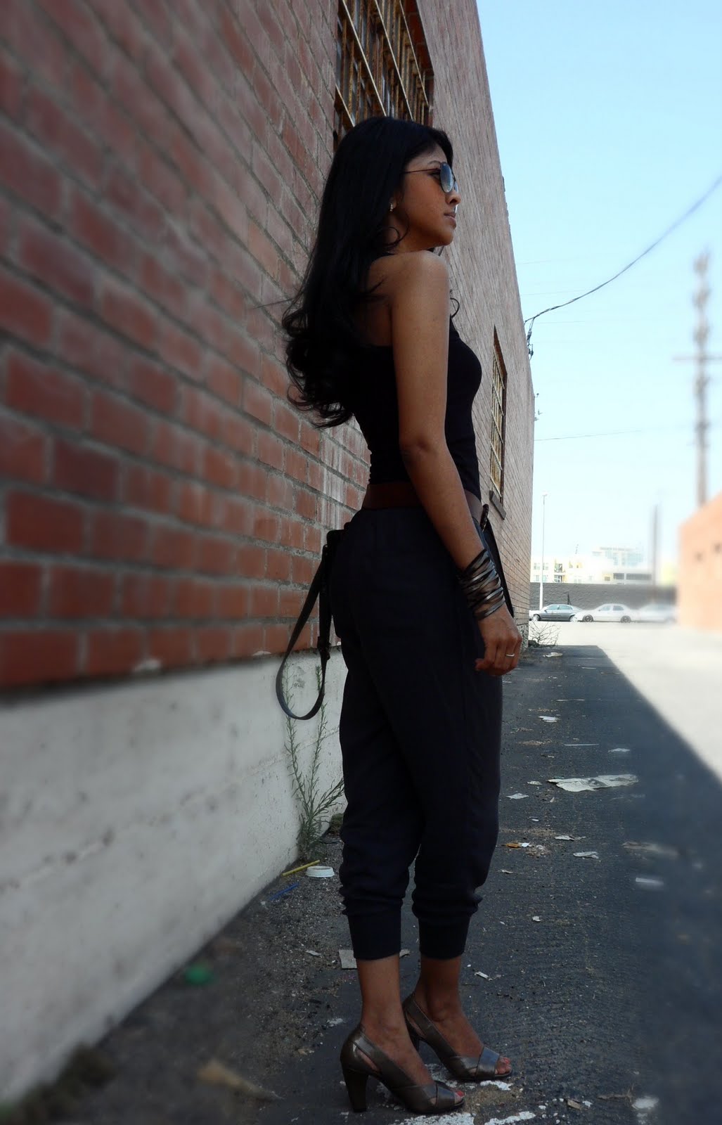 Wearing F21 knit pants, F21 tank top, UO leather belt, UO document bag, leather cuff, shoes from C&K