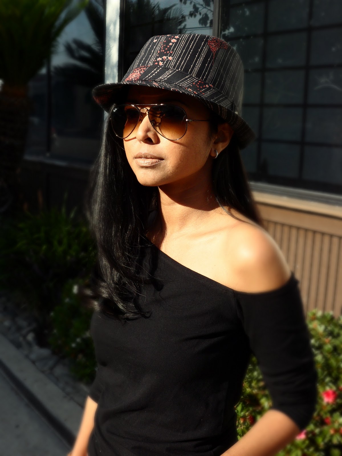 Wearing cotton top from Mphosis( shop in Singapore), full skirt from Zara, Vintage bag from Wasteland, Goorin Bros Fedora, Swatch watch, wrap-around leather bracelet from Humanity for all and Rayban Sunnies
