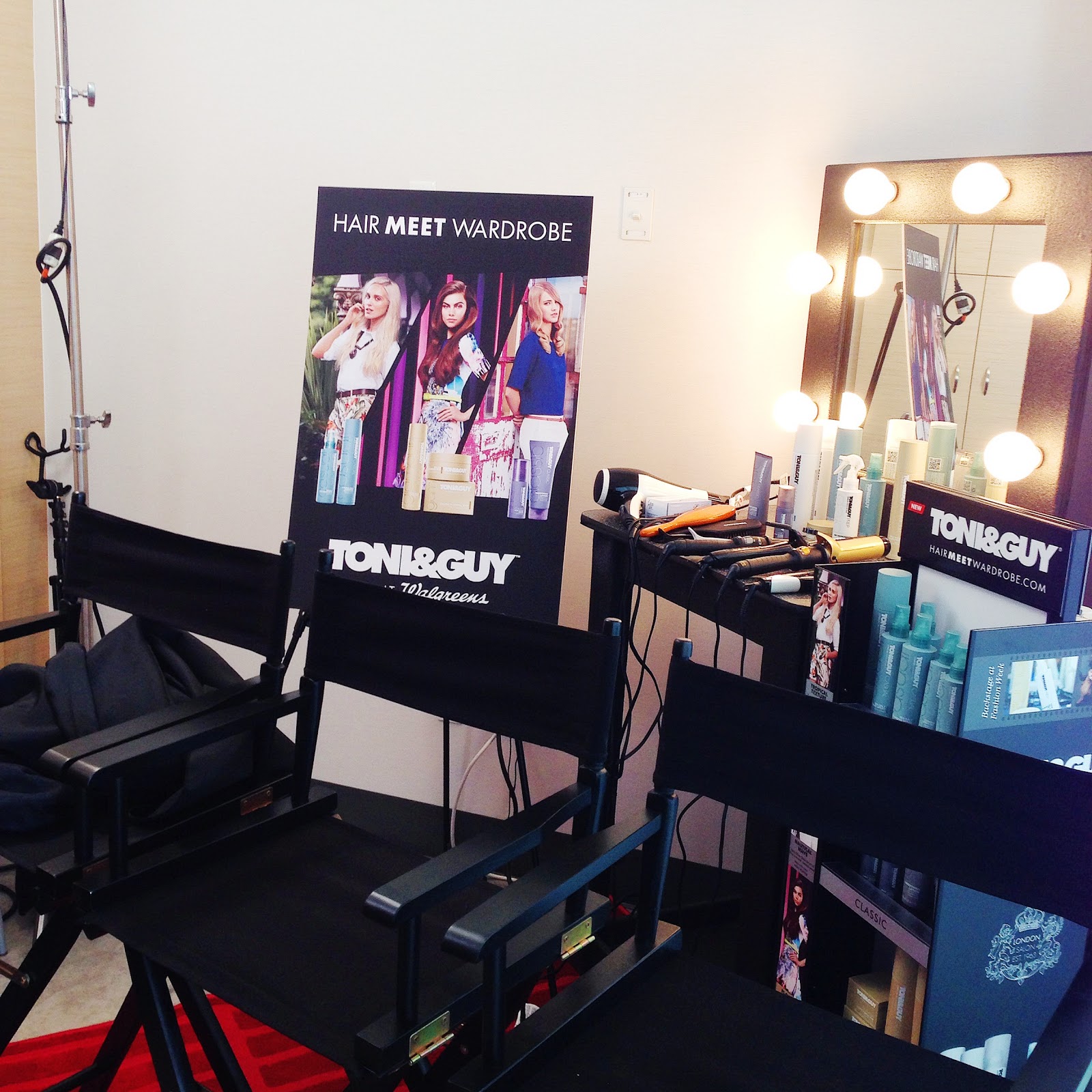 For those who follow me on my Instagram, you got a sneak peak into a new project I am working on with Toni and Guy. Here are some behind the scenes snaps taken on my iPhone. Their new styling collection is awesome! With 3 amazing styling products to suit your wardrobe, it really is “Hair meet Wardrobe”. You can achieve all of these looks, Casual, Classic and Glamour with the right product. I got to be their “Glamour” girl which was great because I got to try some new hair products which is always exciting for me. I’ve also been using their Shampoo and Conditioner products the last couple of weeks and I love ’em! The Glamour collection consists of the Volume Plumping Whip which adds volume and body at the roots and the Firm Hold HairSpray which is perfect for keeping those wavy curls in place, or for the perfect topknot