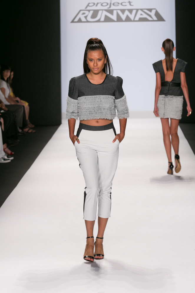 Did you guys catch the season finale of Project Runway? I’ve been such a fan of the show since the very beginning so it was such a thrill for me when Mary Kay reached out to me to re-create the final look from one of the designers that went down the runway. I chose Kini’s look since I’ve been partial to his aesthetic since the season began and I specifically loved the boxy crop top and crop pants that went down the runway yesterday. I was so amazed at how he used denim in such an innovative way.