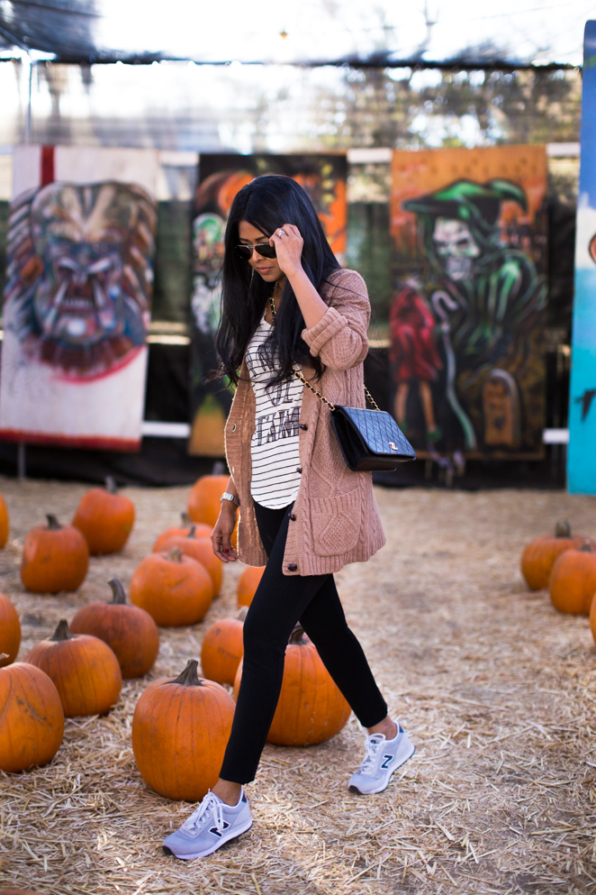 Fall has to be my favorite time of the year and its always lots of fun hanging out, pumpkin picking and enjoying the fruits 😉 of your labor over various pumpkin spiced delicacies. Those pumpkins with faces painted on them are the cutest thing ever! Kept it chill in a pair of leggings that fit like a glove and a cardigan for a cozy look, both from Maison Jules. As I mentioned in my last post, I am taking over their instagram account starting today for their “week in the life” series, so don’t forget to hop on over and see the rest of the outfits I put together as I ran all over the city.