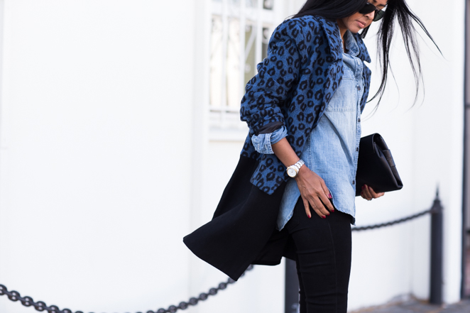 Coat: Asilio The Label / Jeans: Lucky Brand / Shirt: True Religion / Shoes: Zara / Clutch: Zara / Watch: Citizen
