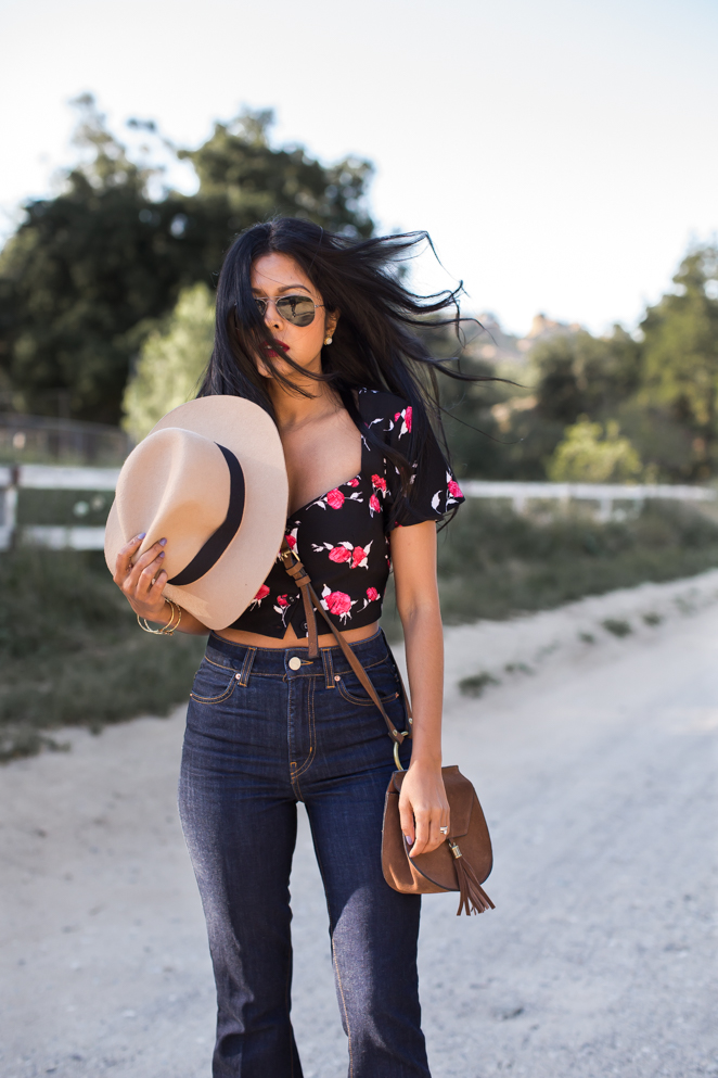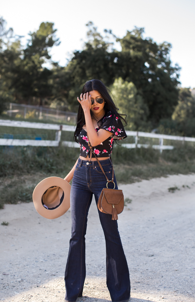 Top: Nasty Gal (Same print in a jumpsuit) / Jeans: Nasty Gal / Bag: Nasty Gal (Similar) /
