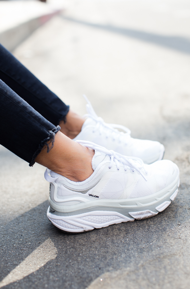 Workin’ a casual look from a couple weekends ago. When I got these Hoka One One sneakers in the mail, I knew they’d be a perfect complement to a chill and laid back outfit for a trip to downtown LA to grab some killer hot dogs with the hubby. Love the little boost in height and these really well padded sneakers made me think I could run around all day thanks to how comfy they are!