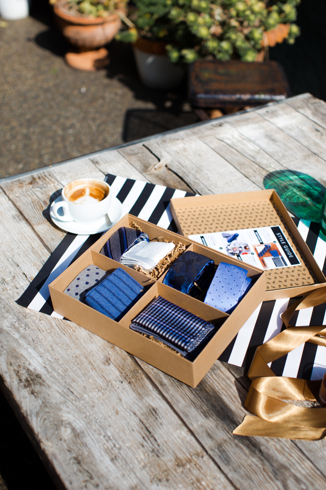 When I was doing my own shopping, this Tie Bar style box really caught my eye. It offers 3 different tie patterns with perfectly matched handkerchiefs and socks. Isn’t that perfect!? Just the best way to help any guy turn into a dapper gentleman. The great part is, flip the box over and you’ll find an easy style guide that illustrates how to wear each of them from Office to date night and a special occasion.