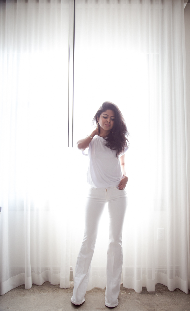 I love all white looks and I especially ADORE flares so I wanted to combine these two aesthetics for a fun shoot. Its definitely new for me to be a little bit more “posey” during a shoot but I wanted to try something different and I think the outfit brought that out a little.