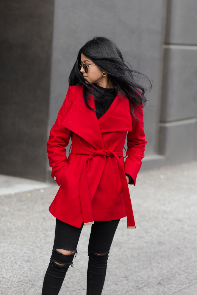 Look 2 is a little more funky. You guys know how much I love to dip into the “androgynous” category and with the red Ted Baker jacket making a statement, this outfit is made for an edgier party where looking hip is just as important as dressing up. When I saw this jacket at the new Ted Baker store in Glendale Galleria, I simply had to have it! In fact we ended up picking up a couple of items (they have awesome gift boxes too!) for our friends which are all wrapped up and under our tree right now.