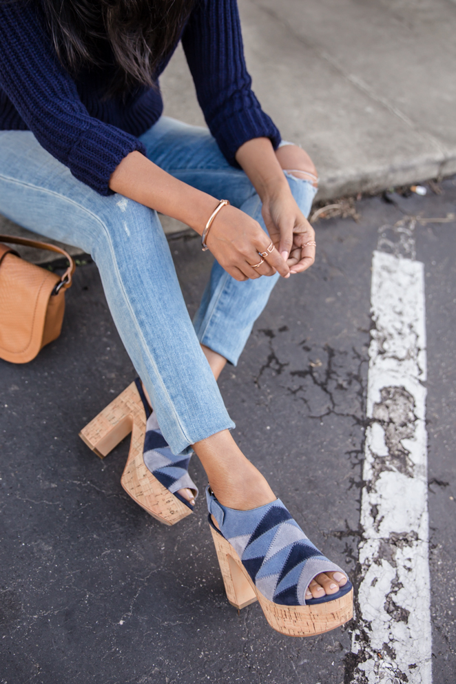Here’s the final look for my Marc Fisher LTD spring trends featuring one that finds inspiration in a fantastic decade for fashion, the 70’s. This trend is most definitely my favorite of 2016, so I cannot be more excited to style these 3 beauties. With this look you can certainly see a color theme that I am totally enamoured by, 50 shades of blue 😉