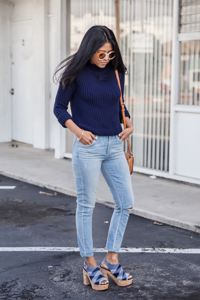 Top: Topshop / Jeans: Agolde / Bag: Liebskind / Shoes: Marc Fisher LTD